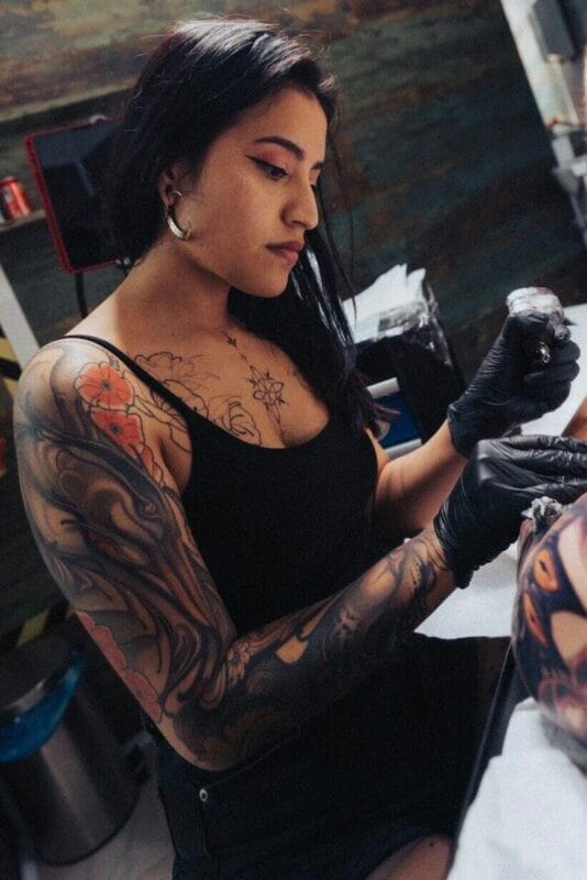 Desde los colores intensos del neotradicional hasta los trazos finos y expresivos del manga, domina ambos estilos con maestría. Su trabajo destaca por su impacto visual y su fidelidad a cada detalle.